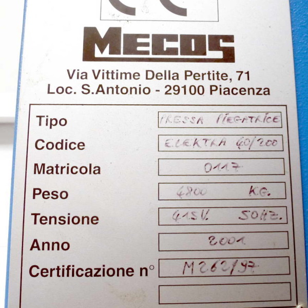 MECOS ELEKTRA 40/200 40 TON (40,640 KGS) X 2000MM ELECTRONIC DOWNSTROKE 4 AXIS CNC PRESS BRAKE WITH ESA KVARA CONTROL